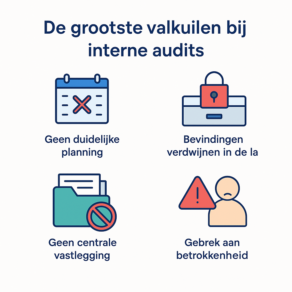 Veel bedrijven voeren pas verbeteringen door vlak voor een audit. Dat leidt tot haastwerk en gemiste kansen. Medewerkers worden onder druk gezet om snel actie te ondernemen, terwijl er de rest van het jaar weinig aandacht is voor kwaliteitsverbetering. Dit werkt averechts: het vergroot de kans op fouten, zorgt voor frustratie en haalt niet het maximale uit het kwaliteitsmanagementsysteem.